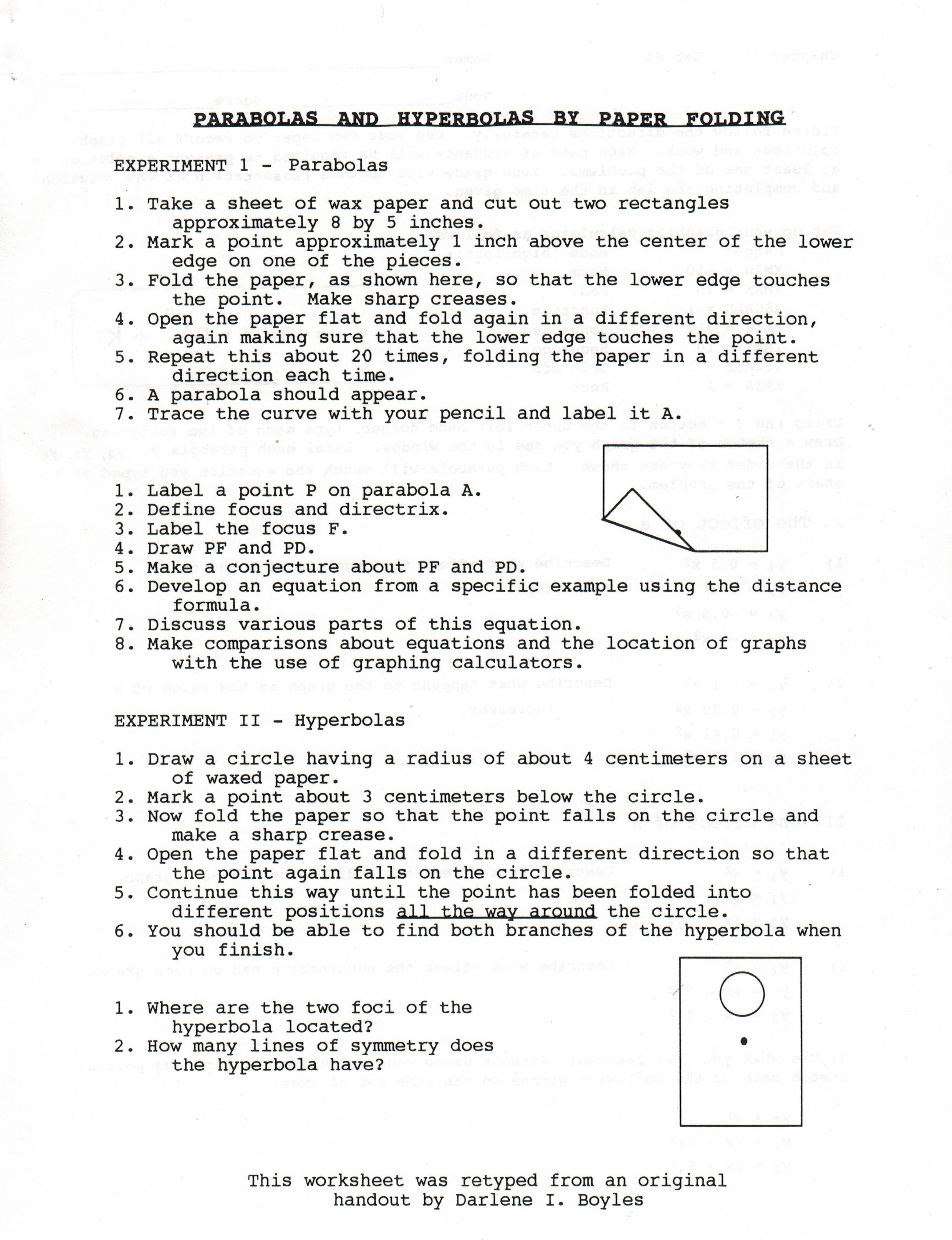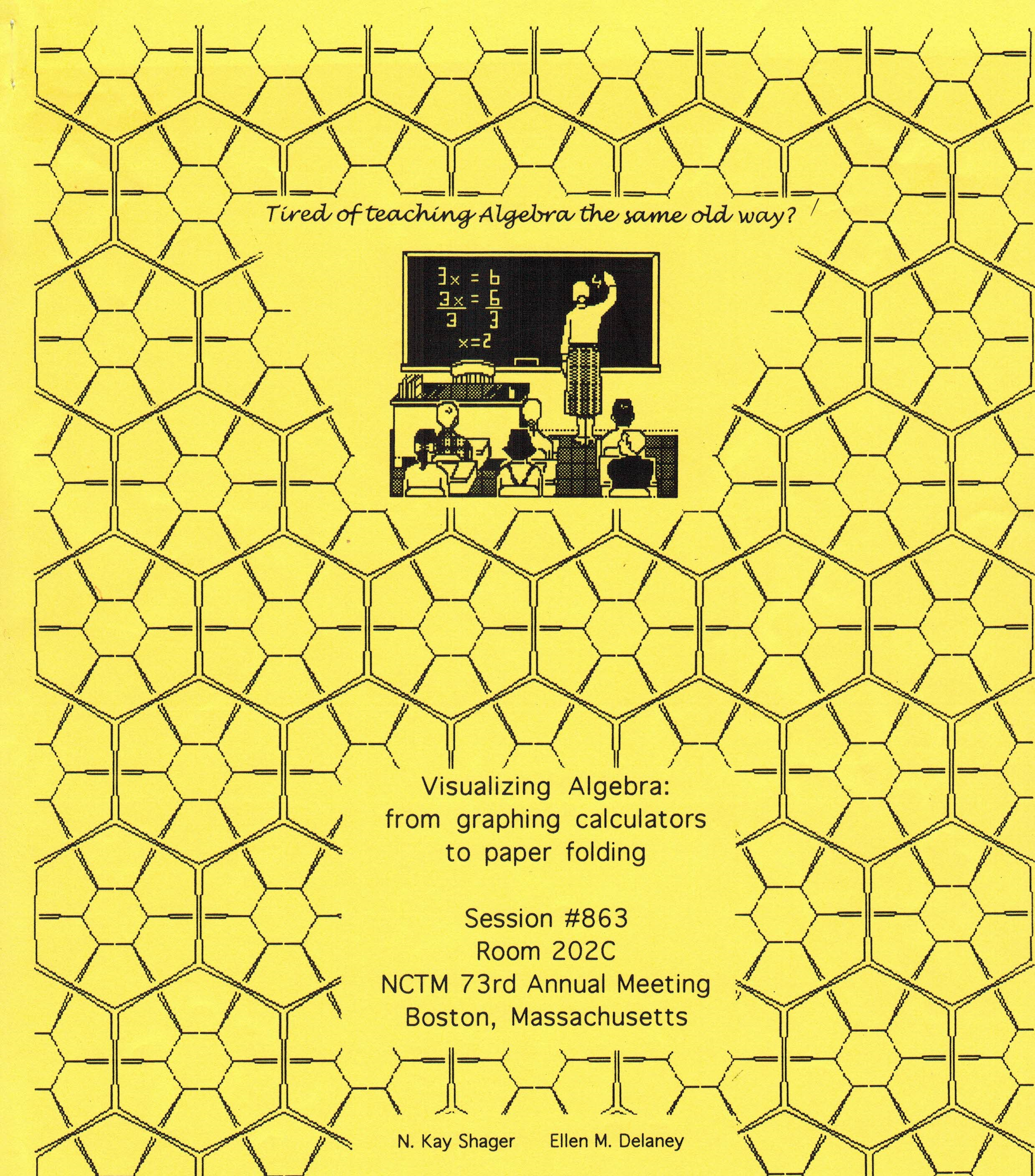 Kay's Math Lessons Variables & Express-ions Algebra Walk 1 Algebra Walk 2 Algebra Build & Room Project Coor-dinate Names Parabolas & Hyperbolas by Paper Folding Lab 7 AP Physics page 1 AP Physics page 2 Title Credits Biblio-graphy Math of Regular Dodeca-hedron Math Stand-ards